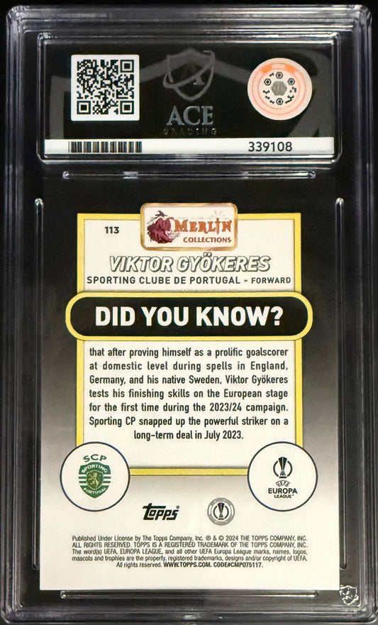 Best Deal - Topps Viktor Gyokeres Purple Wave Refractor /15 Merlin UEFA Club Competitions ACE GRADING 10